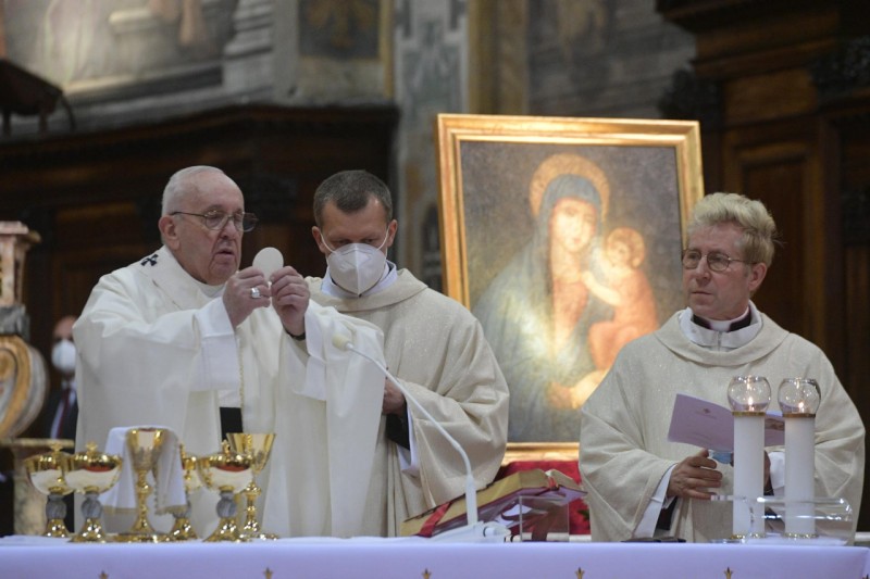 CIUDAD DEL VATICANO (http://press.vatican.va - 11 de abril de 2021).- A las 10.30 horas de esta mañana, en la Iglesia del Santo Espíritu en Sassia, Santuario de la Divina Misericordia, el Santo Padre FRANCISCO ha celebrado la Santa Misa en la Fiesta de la Divina Misericordia. Han concelebrado con el Papa S.E. Mons. Rino Fisichella, Presidente del Pontificio Consejo para la Promoción de la Nueva Evangelización, Mons. Jozef Bart, Rector de la Iglesia del Santo Espíritu en Sassia y algunos Misioneros de la Misericordia instituidos durante el Jubileo de la Misericordia.