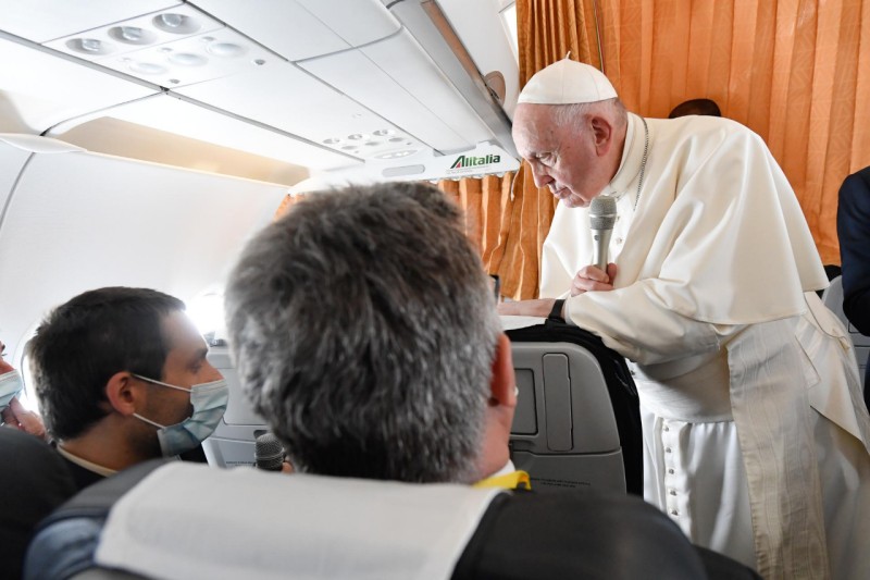 CIUDAD DEL VATICANO (http://press.vatican.va - 17 de septiembre de 2021).- Conferencia de Prensa del Santo Padre FRANCISCO durante el vuelo de regreso a Roma.